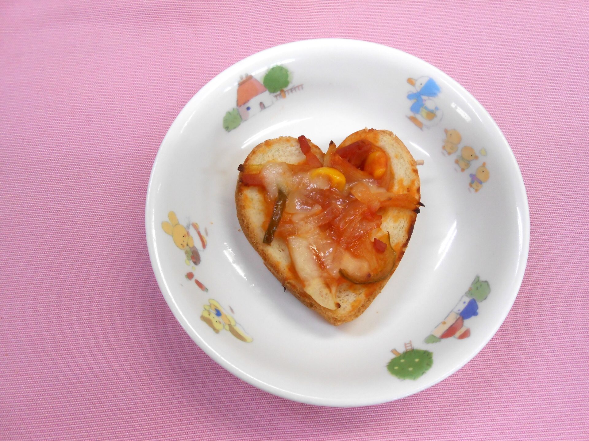 あおばさんはクッキングでハートのピザトーストを作りました♡